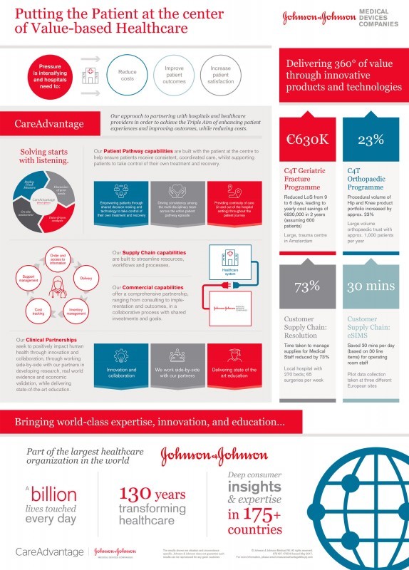 Johnson & Johnson Family Member, Johnson & Johnson Medical Devices (JJMD) says it is leveraging its 130 years of knowledge and expertise in what it says is a new approach. CareAdvantage purports to help drive value-based healthcare in hospitals across Europe, Middle East and Africa (EMEA).